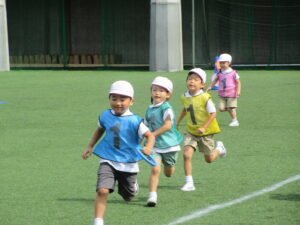 10月12日(日)本日は雨も上がり、中高下グラウンドにて運動会を行いました。年少組は可愛らしい忍者に変身し、元気いっぱいの踊りを披露しました。年長組は仲間と力を合わせて取り組んだパラバルーン。息を合わせて色々な技を行い、心をひとつにして取り組む姿に成長を感じました。リレーでは最後まで一生懸命走る子供たちの姿が印象的で、仲間を応援する声にも温かい気持ちがあふれていました。子どもたちの頑張りや優しさがたくさん見られた、運動会。応援に来てくださいました皆さまの温かなご声援とご協力に、心より感謝申し上げます。